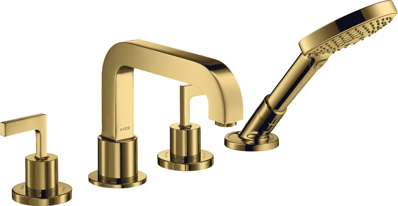 AXOR Citterio 4-otworowa bateria wannowa do montażu na cokole z płytek Złoty Optyczny Polerowany