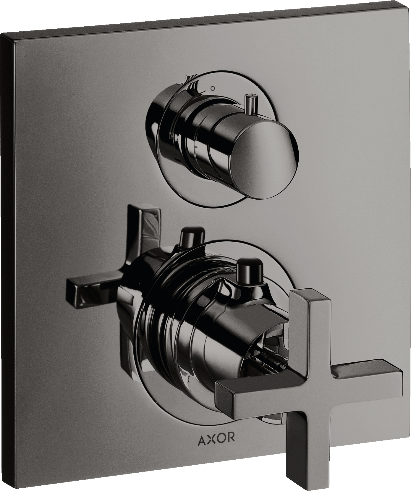 AXOR Citterio Bateria termostatyczna z zaworem odcinająco-przełączającym, z uchwytem krzyżowym, montaż podtynkowy, element zewnętrzny Czarny Chrom Polerowany