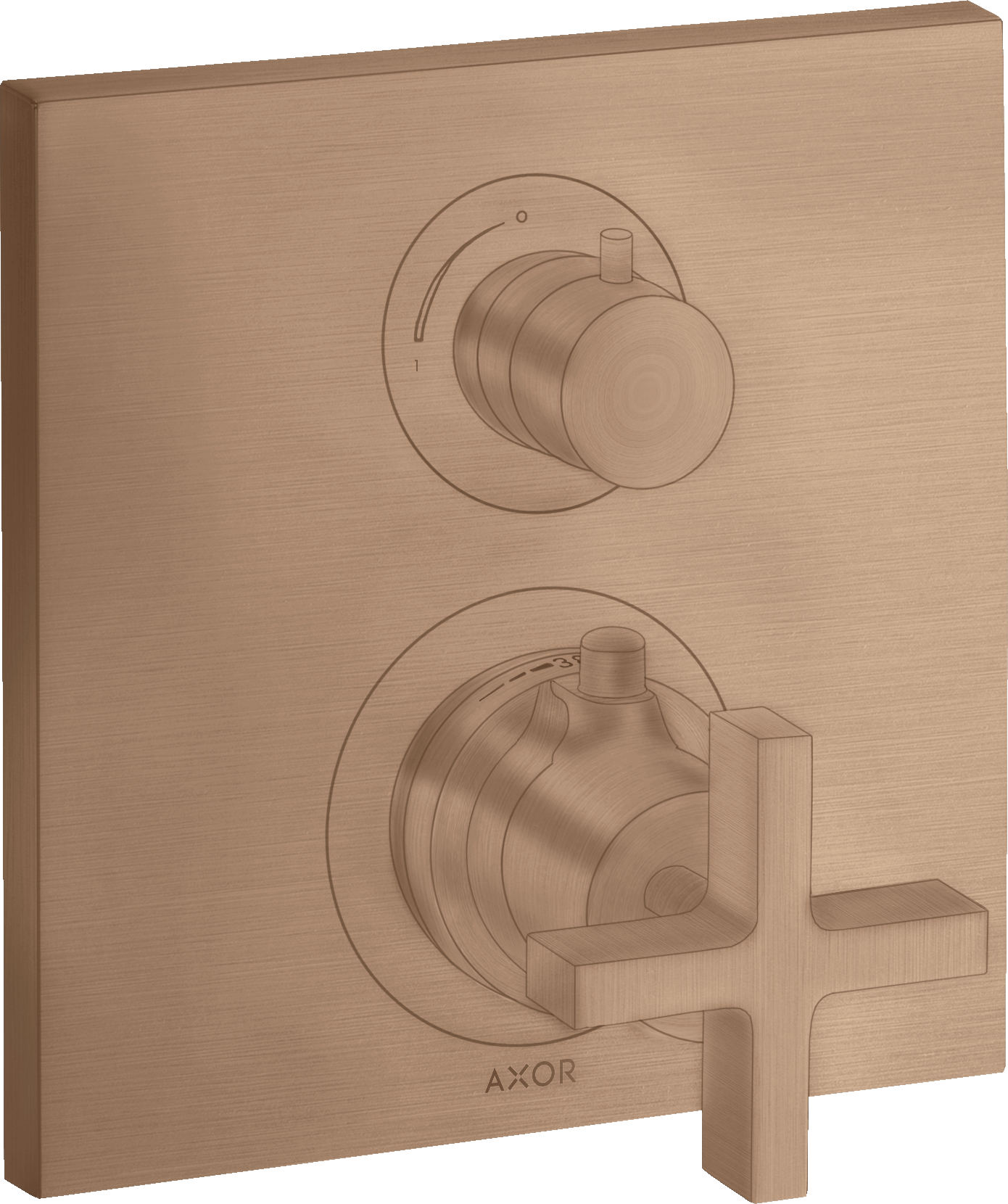 AXOR Citterio Bateria termostatyczna z zaworem odcinająco-przełączającym, z uchwytem krzyżowym, montaż podtynkowy, element zewnętrzny Czerwone Złoto Szczotkowane