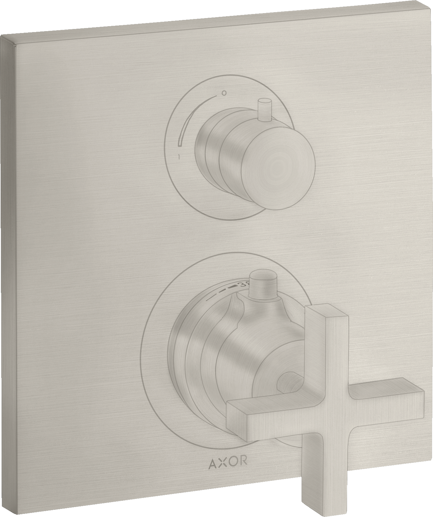 AXOR Citterio Bateria termostatyczna z zaworem odcinająco-przełączającym, z uchwytem krzyżowym, montaż podtynkowy, element zewnętrzny Stal Szlachetna Optyczna