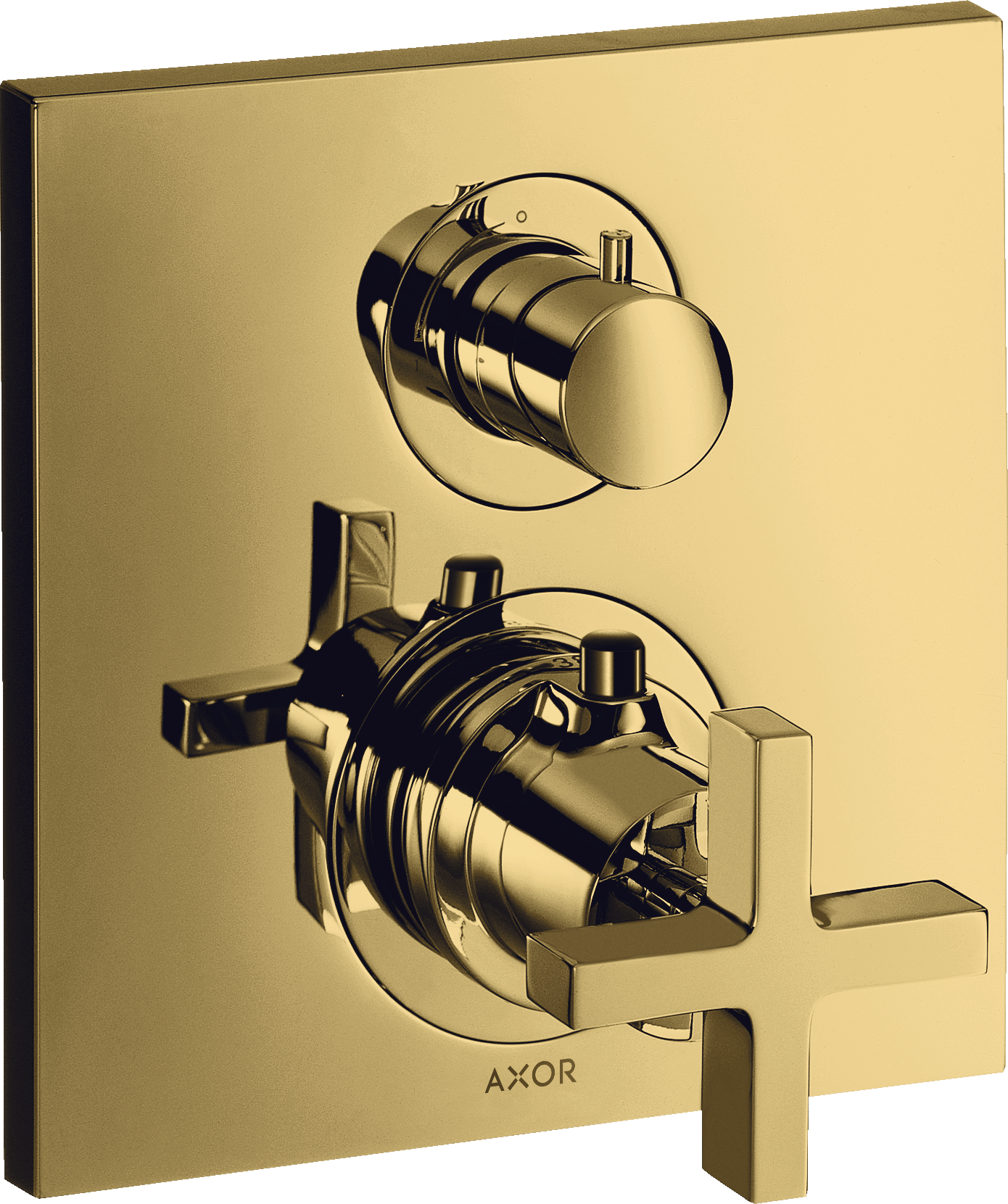 AXOR Citterio Bateria termostatyczna z zaworem odcinająco-przełączającym, z uchwytem krzyżowym, montaż podtynkowy, element zewnętrzny Złoty Optyczny Polerowany