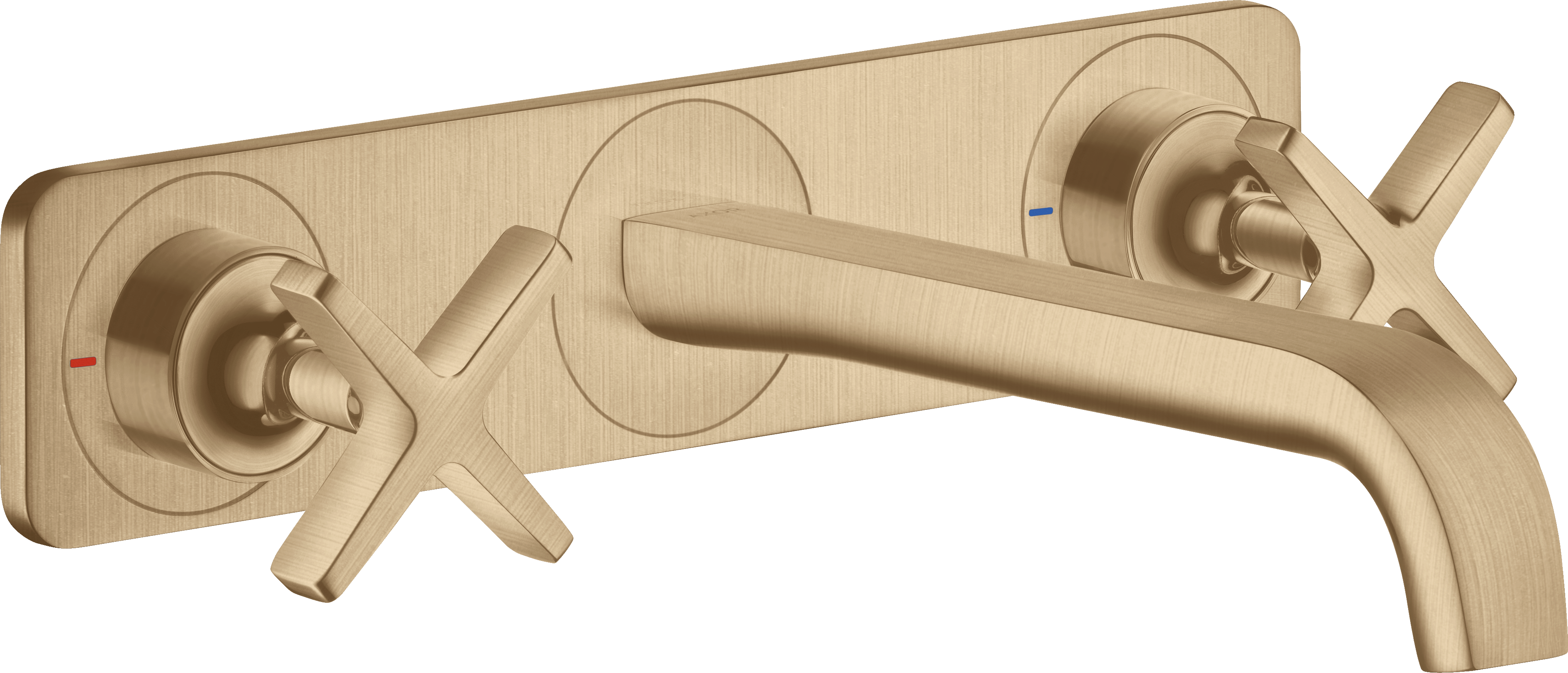 AXOR Citterio E 3-otworowa bateria umywalkowa z wylewką 220 mm i płytką, montaż ścienny podtynkowy, element zewnętrzny Brąz Szczotkowany