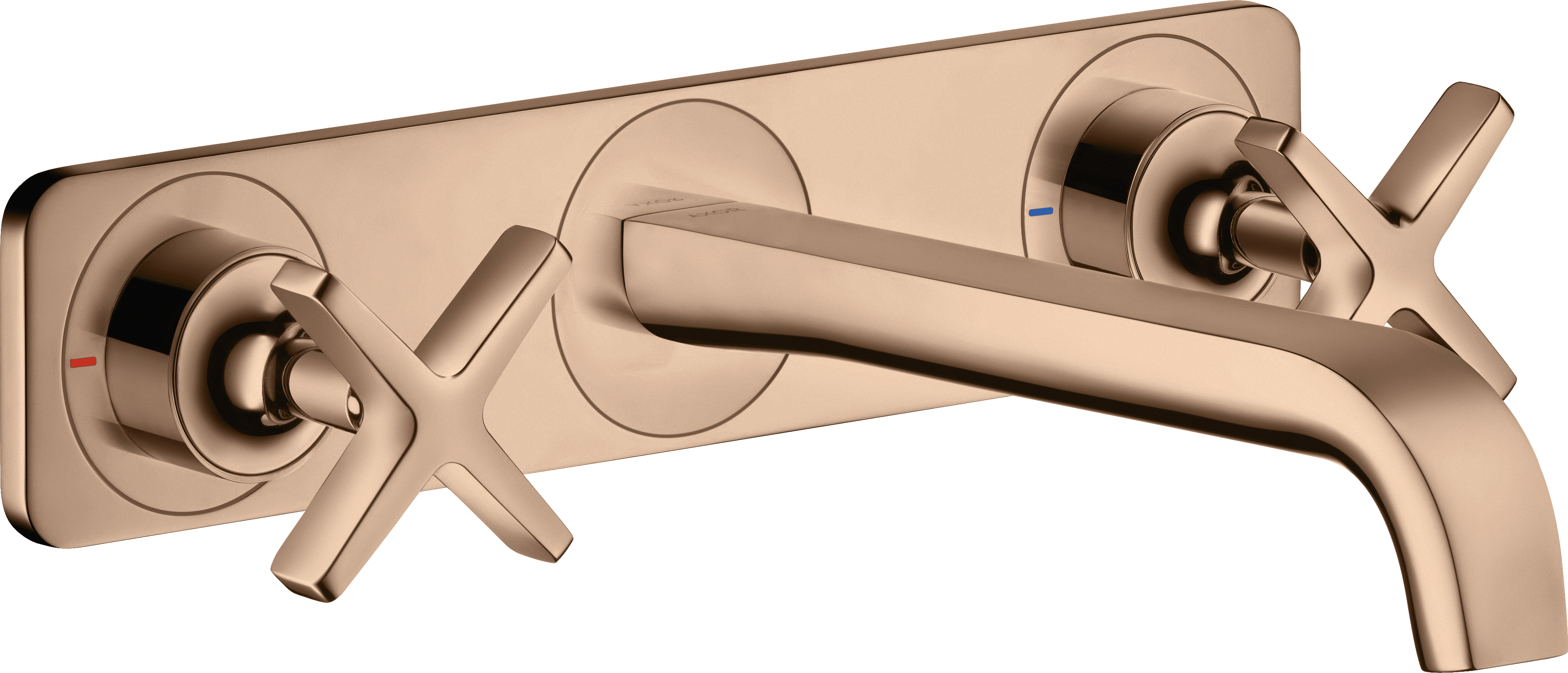 AXOR Citterio E 3-otworowa bateria umywalkowa z wylewką 220 mm i płytką, montaż ścienny podtynkowy, element zewnętrzny Czerwone Złoto Polerowane