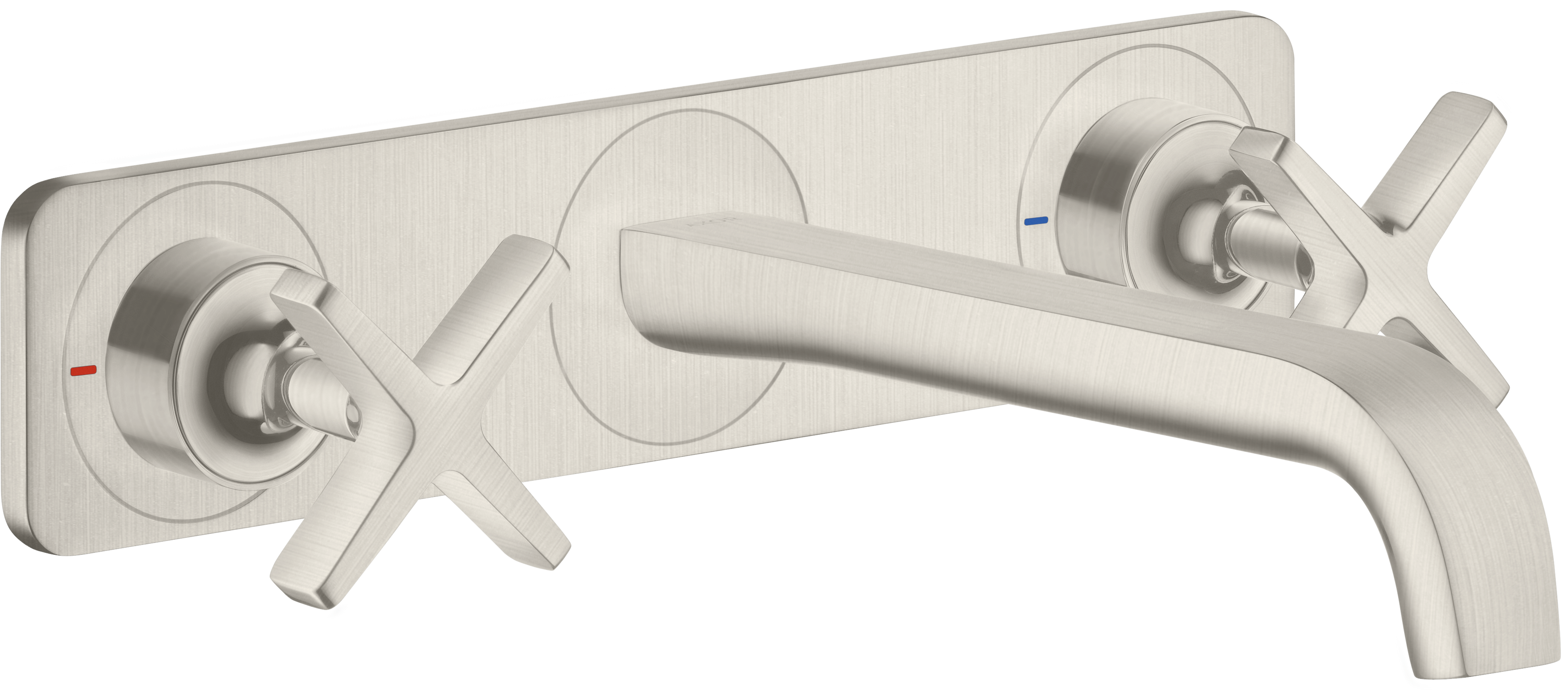 AXOR Citterio E 3-otworowa bateria umywalkowa z wylewką 220 mm i płytką, montaż ścienny podtynkowy, element zewnętrzny Stal Szlachetna Optyczna