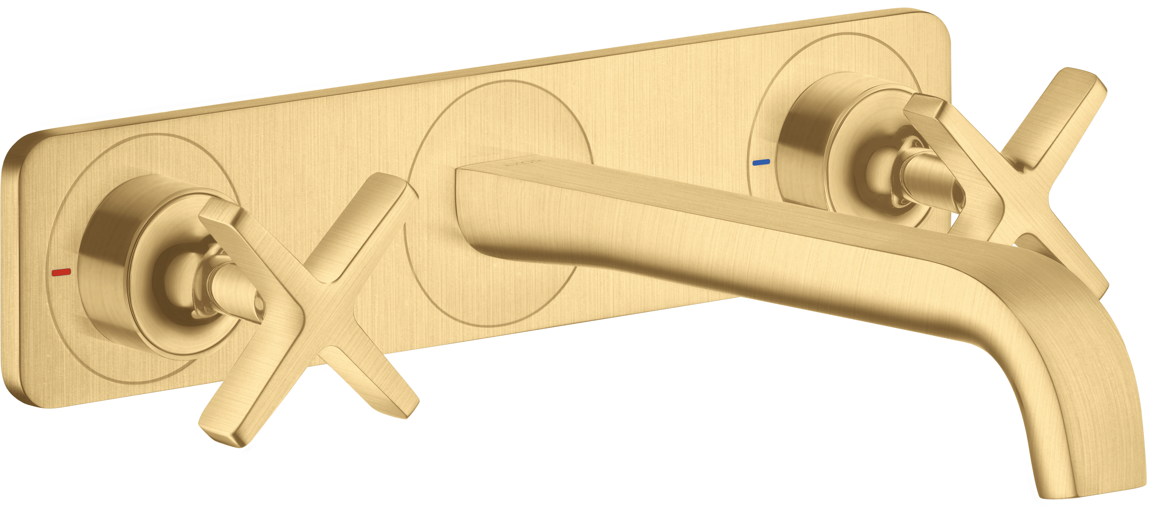 AXOR Citterio E 3-otworowa bateria umywalkowa z wylewką 220 mm i płytką, montaż ścienny podtynkowy, element zewnętrzny Złoty Optyczny Szczotkowany