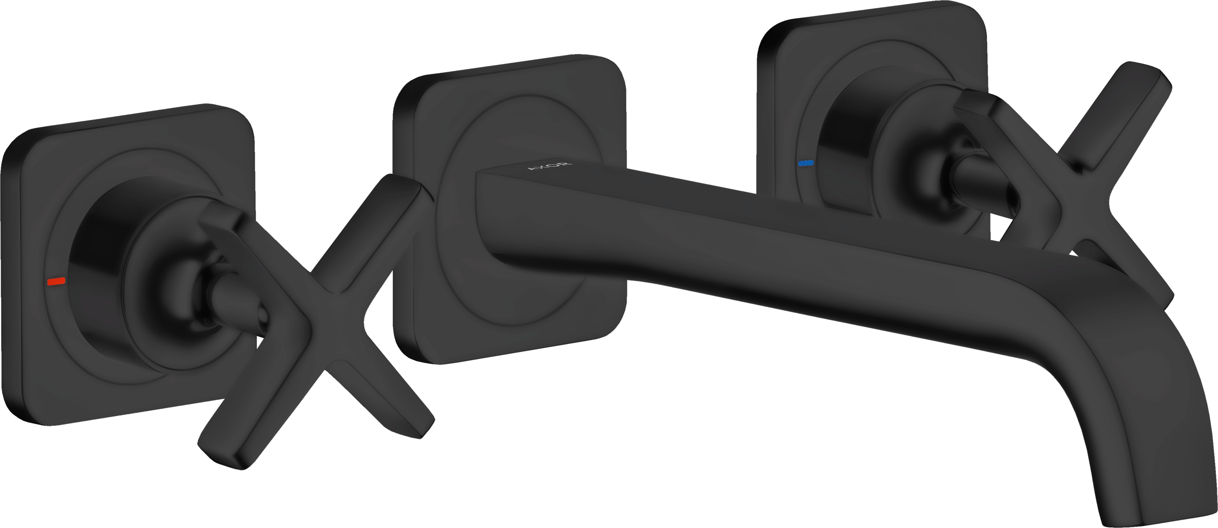 AXOR Citterio E 3-otworowa bateria umywalkowa z wylewką 220 mm i rozetami, montaż ścienny podtynkowy, element zewnętrzny Czarny Matowy