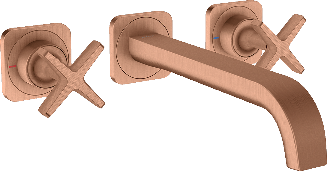 AXOR Citterio E 3-otworowa bateria umywalkowa z wylewką 220 mm i rozetami, montaż ścienny podtynkowy, element zewnętrzny Czerwone Złoto Szczotkowane