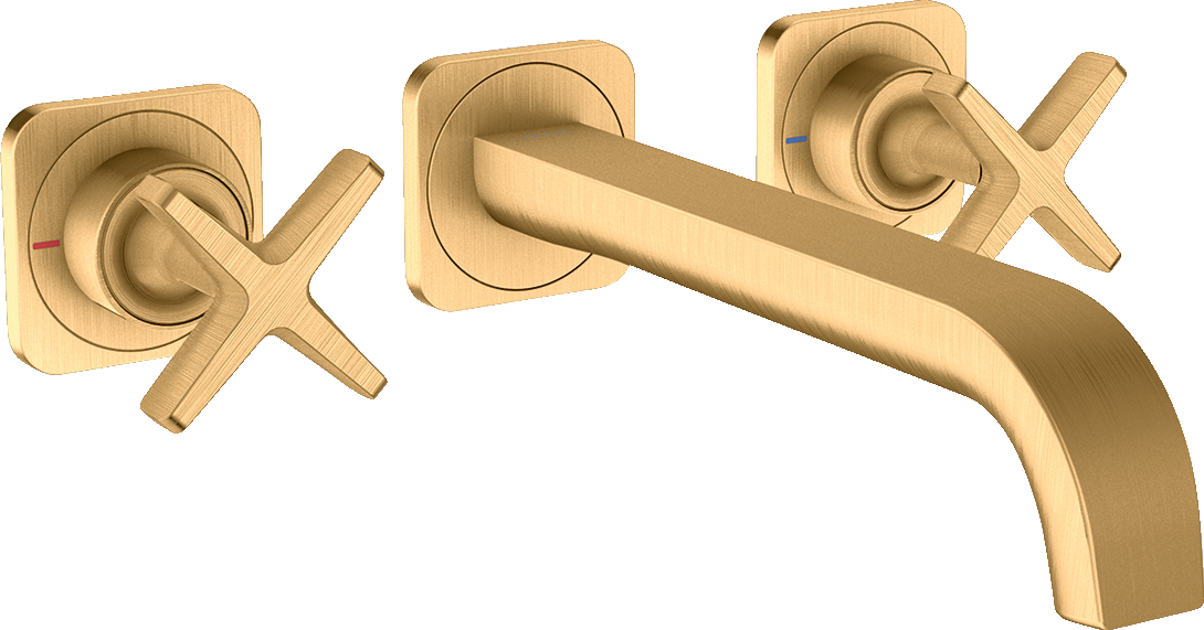 AXOR Citterio E 3-otworowa bateria umywalkowa z wylewką 220 mm i rozetami, montaż ścienny podtynkowy, element zewnętrzny Mosiądz Szczotkowany