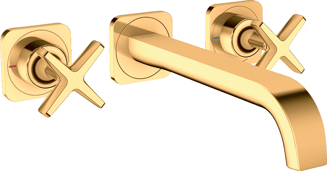 AXOR Citterio E 3-otworowa bateria umywalkowa z wylewką 220 mm i rozetami, montaż ścienny podtynkowy, element zewnętrzny Złoty Optyczny Polerowany