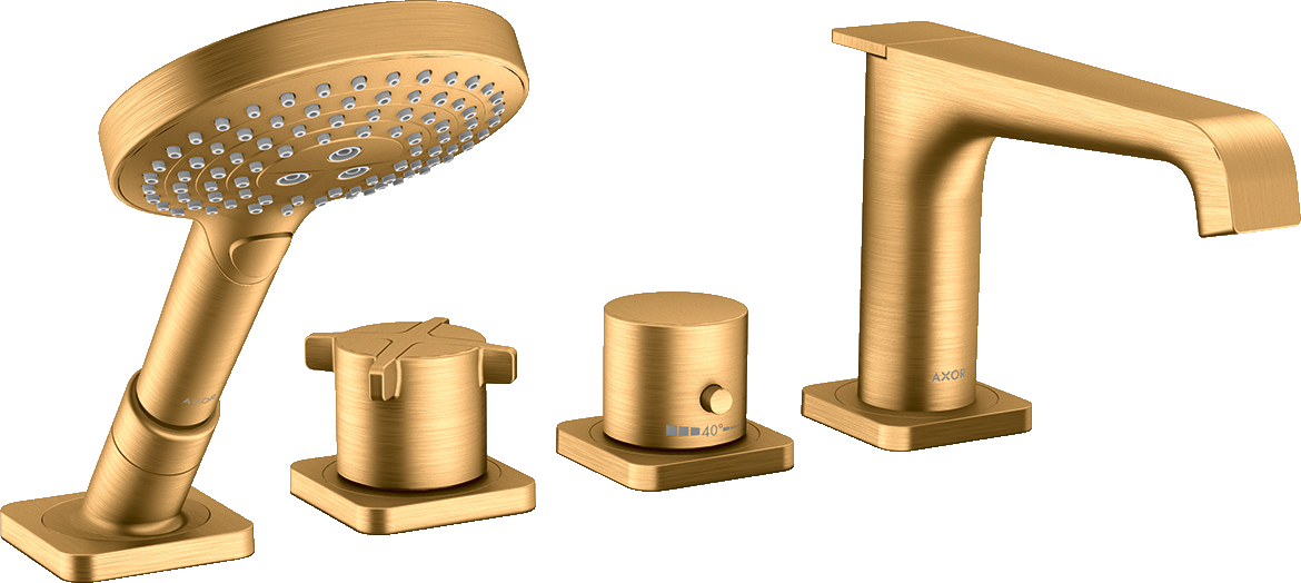 AXOR Citterio E 4-otworowa bateria termostatyczna wannowa do montażu na brzegu wanny Złoty Optyczny Szczotkowany