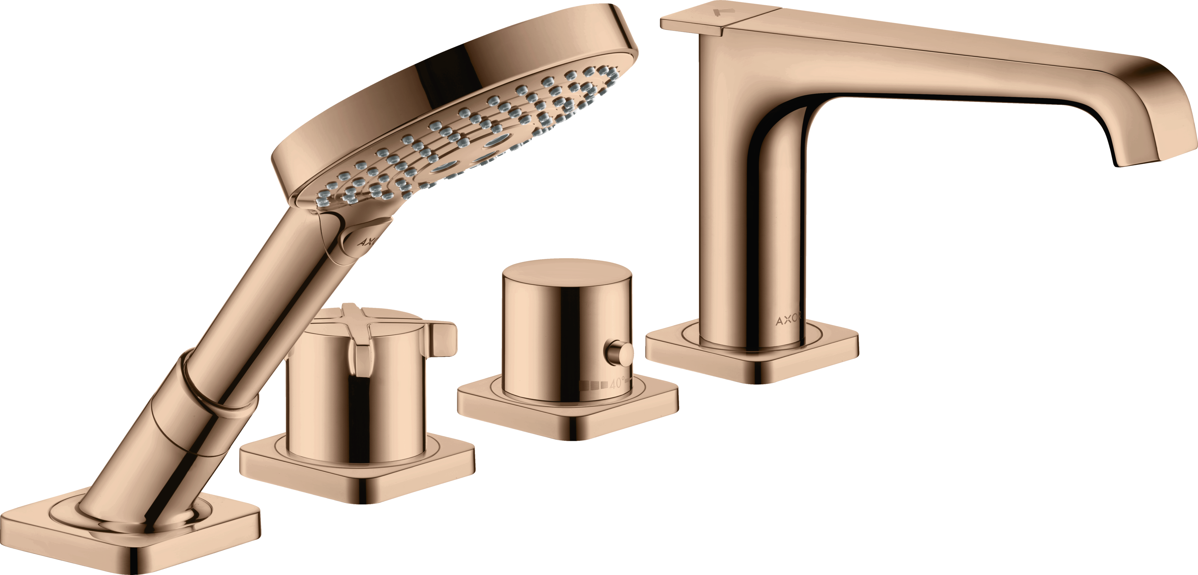 AXOR Citterio E 4-otworowa bateria termostatyczna wannowa do montażu na cokole z płytek Czerwone Złoto Polerowane
