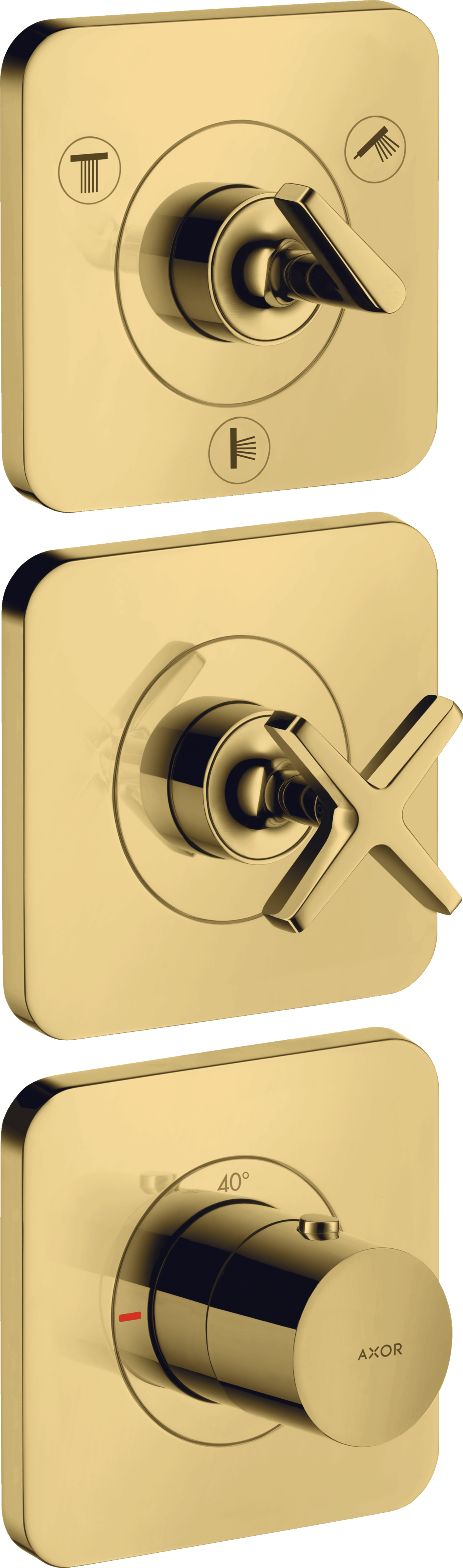 AXOR Citterio E Moduł termostatyczny 380/120 podtynkowy z rozetami do 3 odbiorników Złoty Optyczny Polerowany