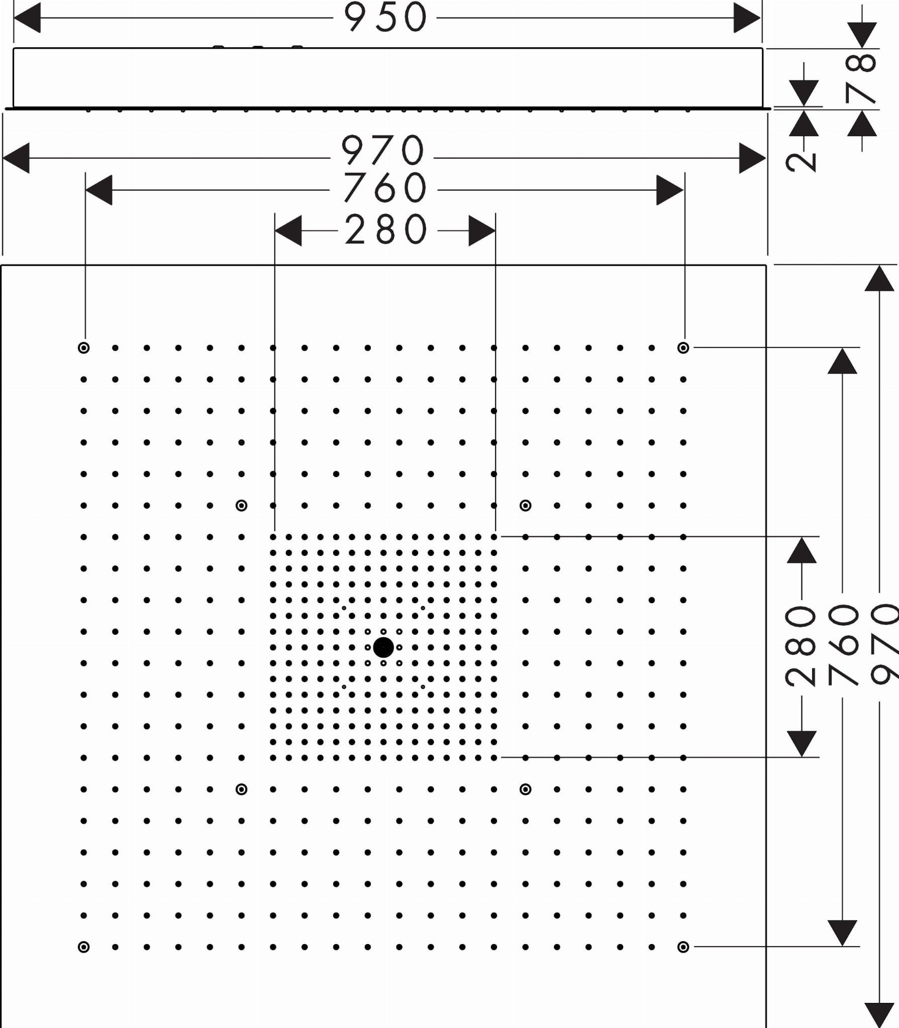✅ wielkość głowicy: 970 x 970 mm