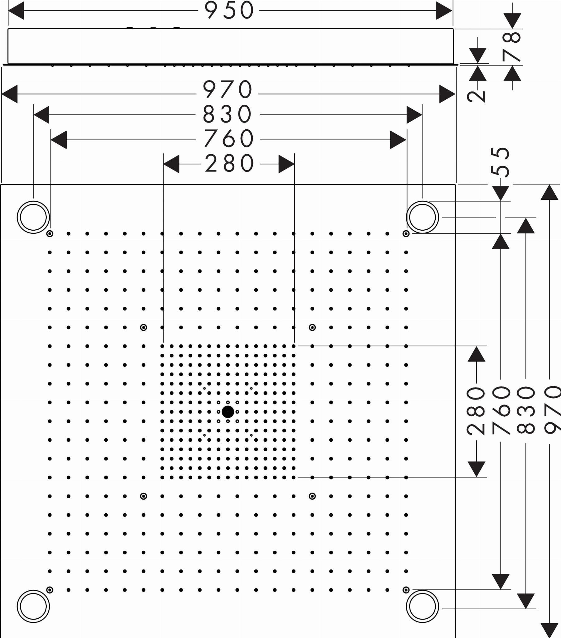 ✅ wielkość głowicy: 970 x 970 mm