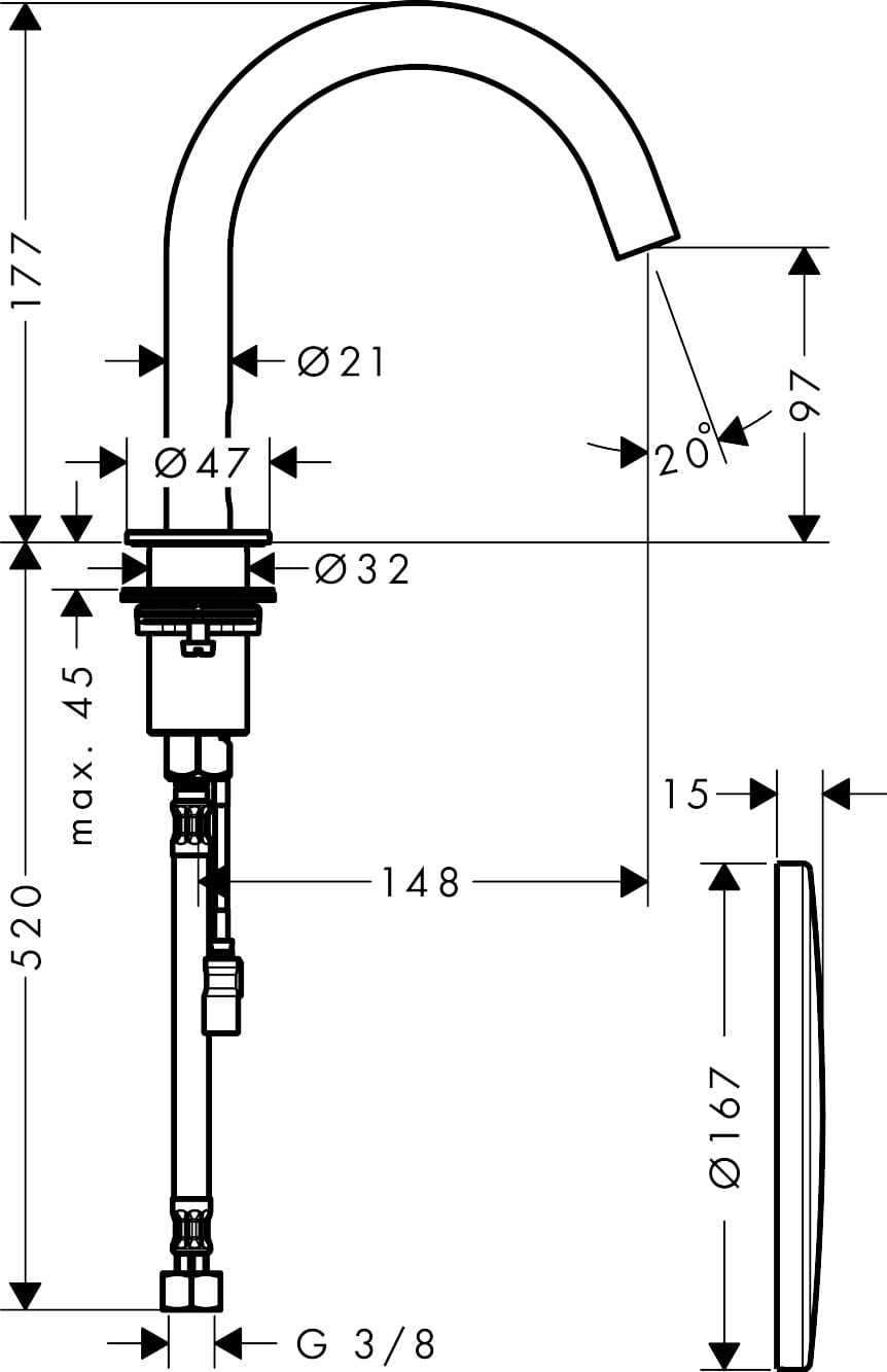 AXOR Uno Elektroniczna bateria umywalkowa bez regulacji temperatury 230 V Chrom