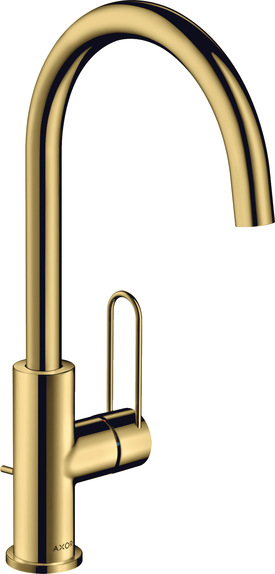 AXOR Uno Jednouchwytowa bateria umywalkowa 240 z uchwytem loop i z kompletem odpływowym Złoty Optyczny Polerowany