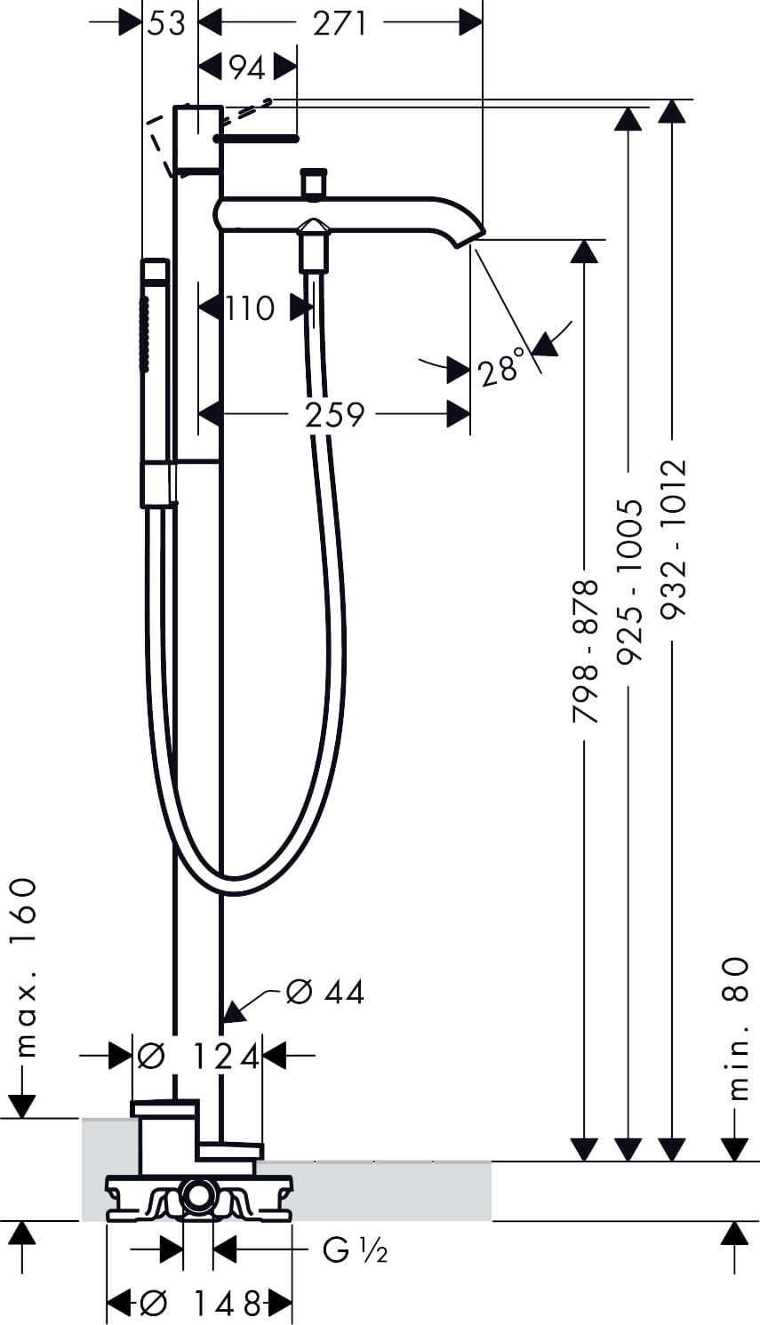 ✅ w składzie: jednouchwytowa bateria wannowa podłogowa, główka prysznicowa, uchwyt prysznicowy, wąż prysznicowy