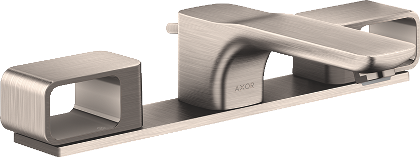 AXOR Urquiola 3-otworowa bateria umywalkowa 50 z płytką i kompletem odpływowym Stal Szlachetna Optyczna