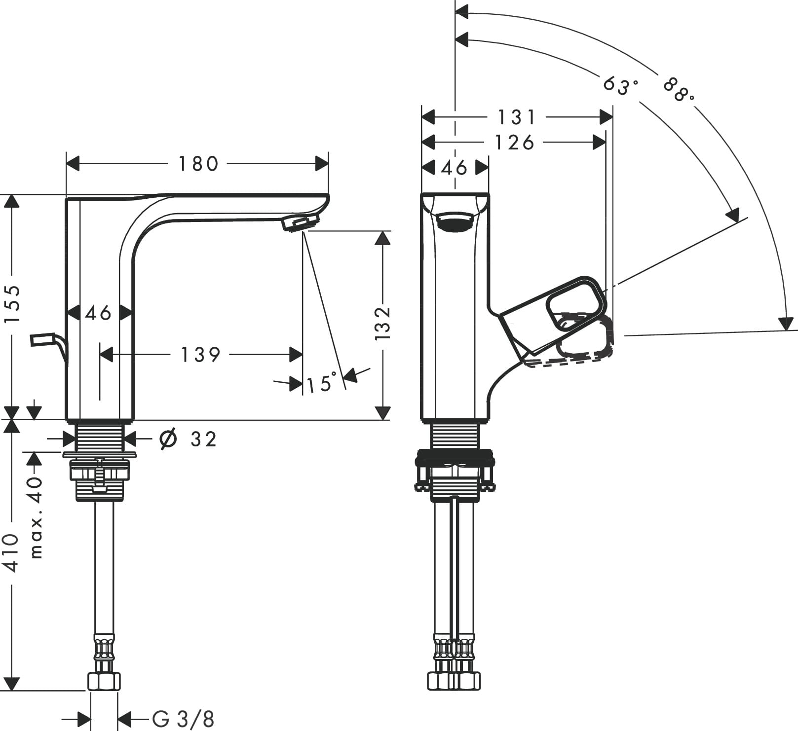 ✅ wysokość wylewki: 132 mm