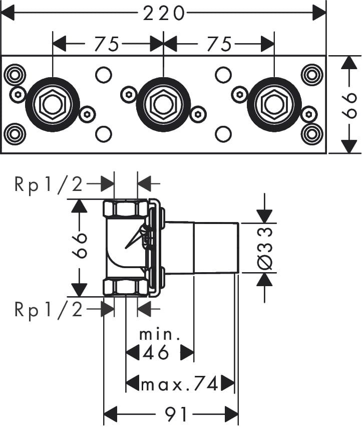 AXOR Zestaw podstawowy do baterii termostatycznej do 2odbiorników Zestaw podstawowy do baterii termostatycznej do 2odbiorników