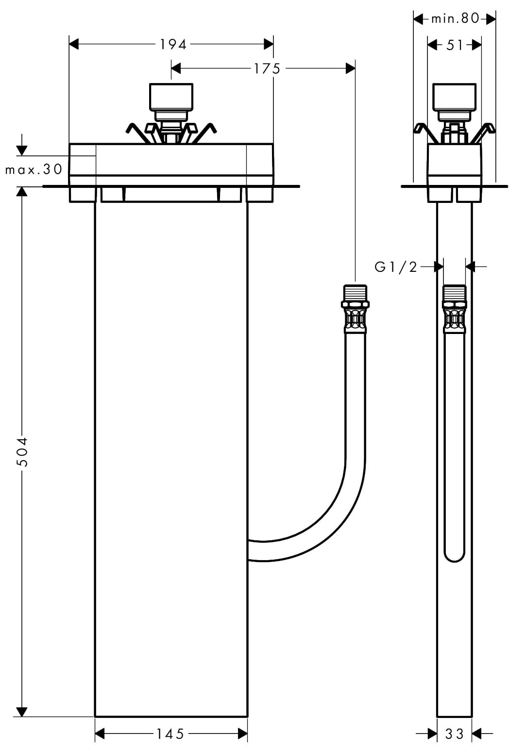 ✅ minimalna szerokość brzegu wanny: 100 mm