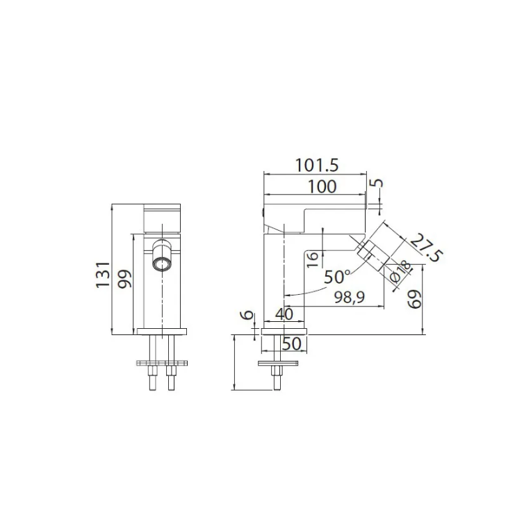 zasięg wylewki: 101 mm,