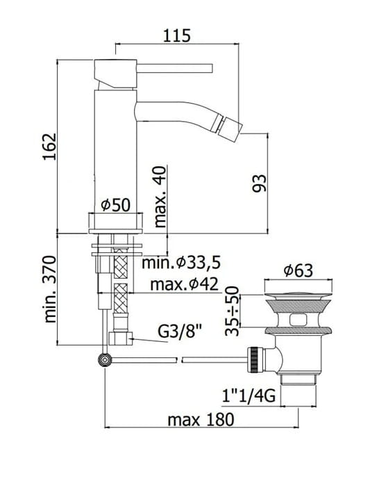 BATERIA BIDETOWA STOJĄCA B/K LIGHT CZARNY MAT PAFFONI