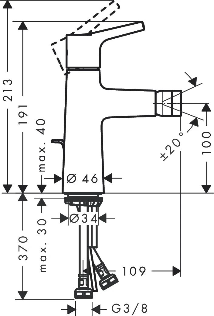 Elastyczne zastosowanie: Bateria bidetowa jest wyposażona w element formowania strumienia z przegubem kulowym, który można regulować o 20 stopni w dowolnym kierunku