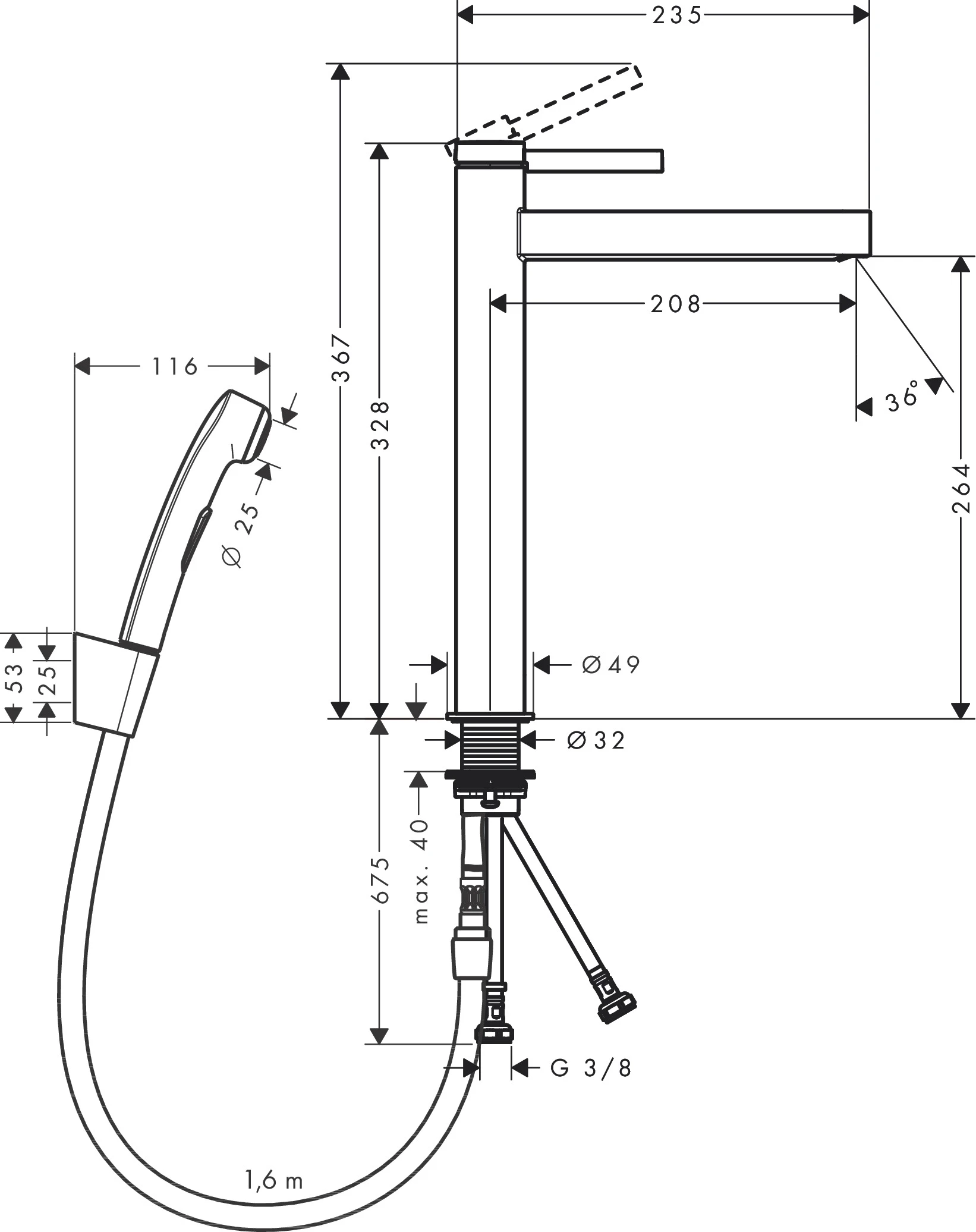 ✅ wysokość wylewki: 264 mm