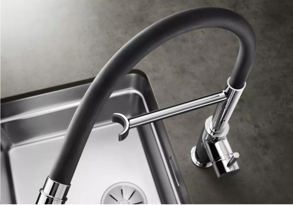 Elastyczny gumowy wąż w kolorze czarnym zapewnia optymalny zakres ruchu