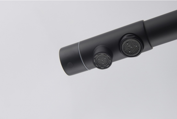 Bateria Royal to gwarancja trwałości, funkcjonalności i estetyki. Wysokiej jakości armatura w odcieniu czarnego matu pasuje do niemal każdego wnętrza. Świetnie prezentuje się szczególnie na tle jasnych mebli, stając się głównym elementem aranżacji.