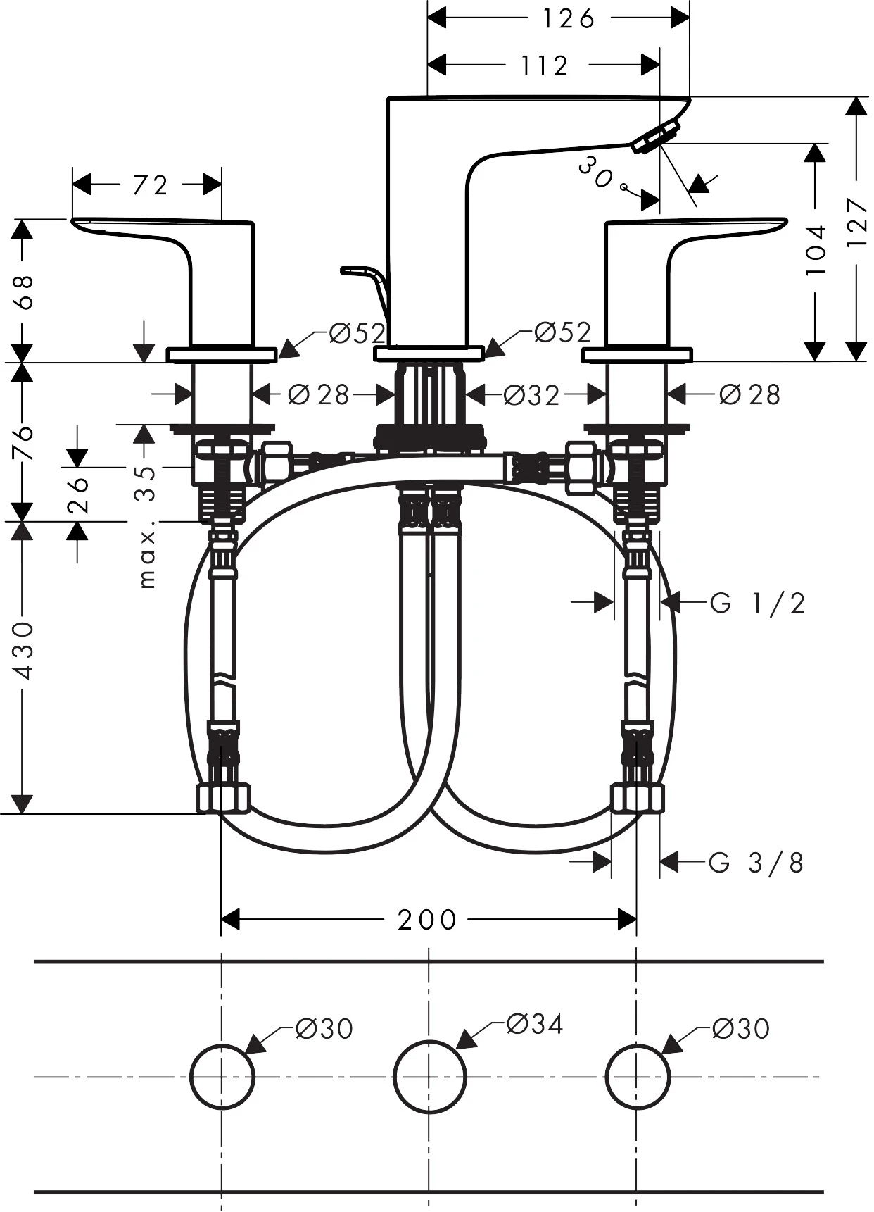 Hansgrohe Talis E 3-otworowa bateria umywalkowa z cięgłem