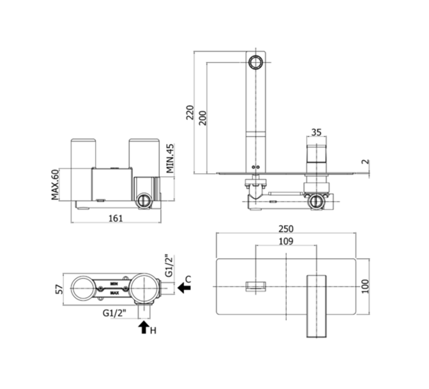 BATERIA UMYWALKOWA PODTYNKOWA ELLE CHROM PAFFONI