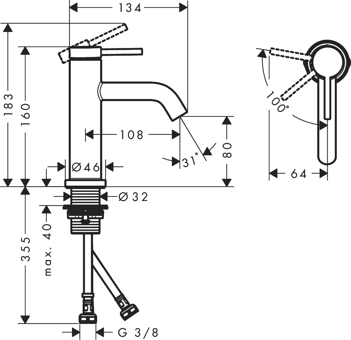✅ wysokość wylewki: 80 mm