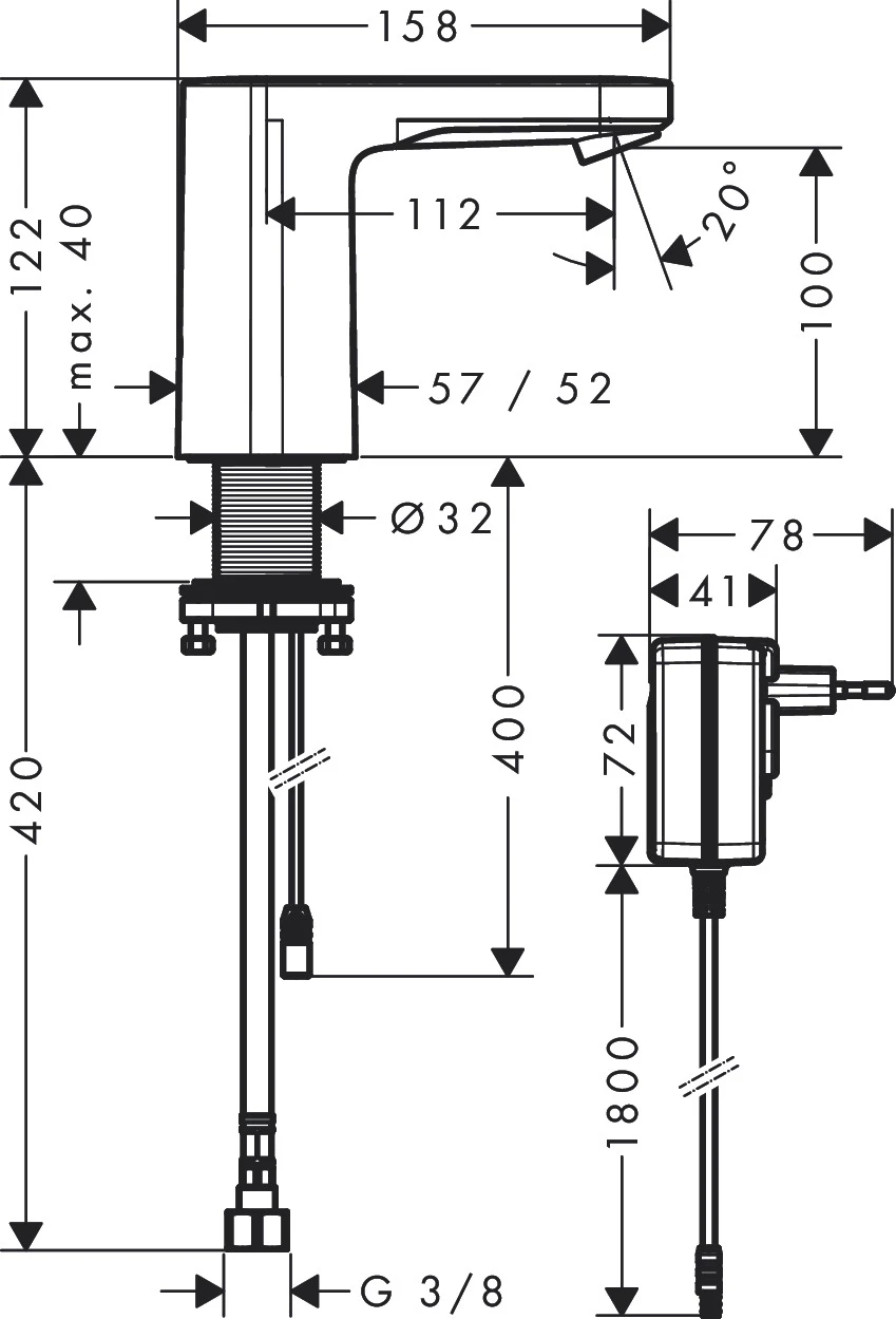 BATERIA UMYWALKOWA VERNIS BLEND 100 ELEKTRONICZNA NA WODĘ ZMIESZANĄ, NA 230V CHROM HANSGROHE