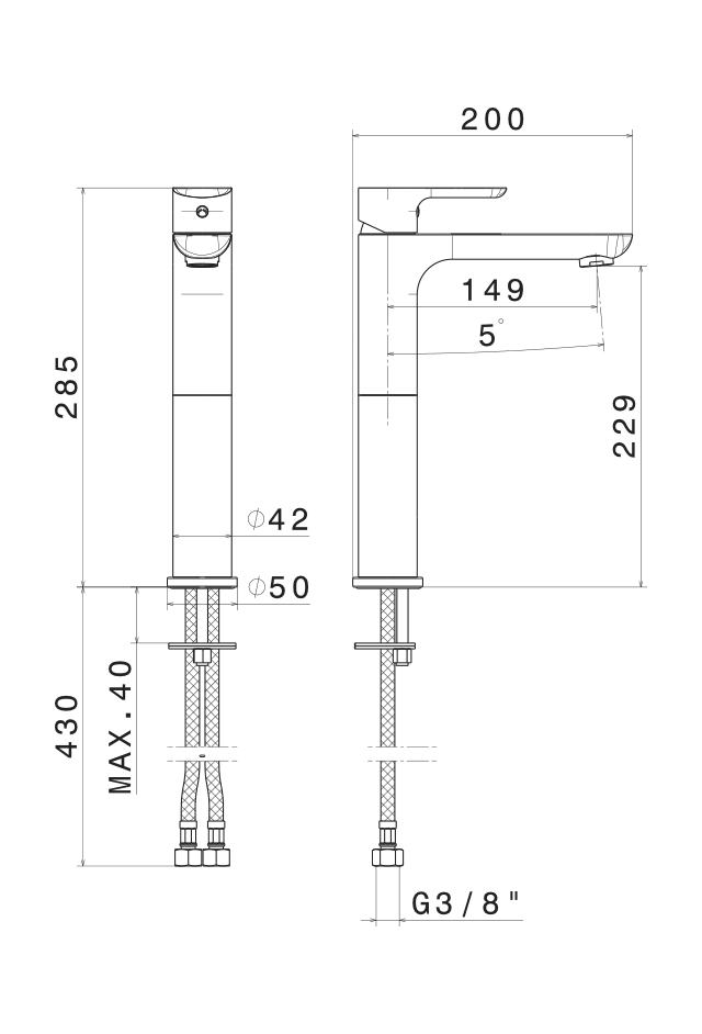 BATERIA UMYWALKOWA WYSOKA B/K SLATE CHROM VEMA