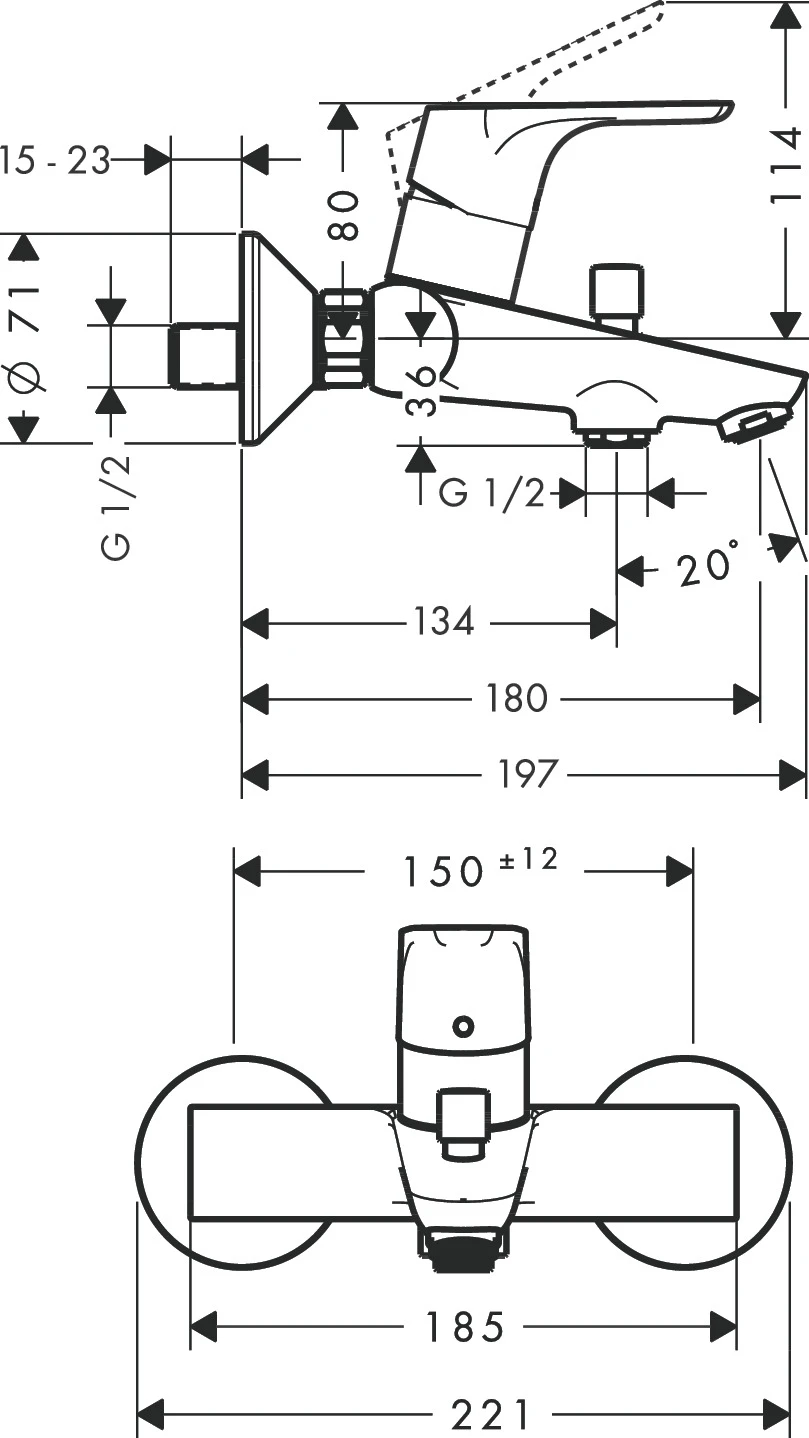 Hansgrohe Focus Jednouchwytowa bateria wannowa, montaż natynkowy