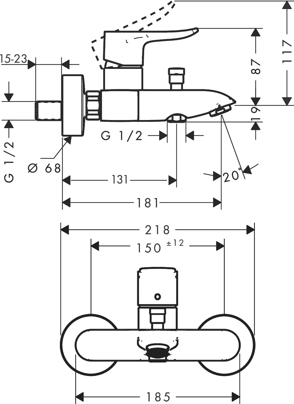 BATERIA WANNOWA ŚCIENNA METRIS E2 HANSGROHE