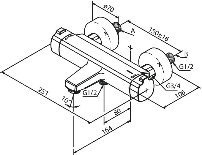 BATERIA WANNOWA TERMOSTATYCZNA PINE Thermixa 700 DAMIXA STAL PVD