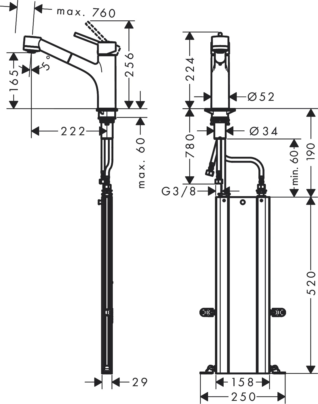Zawiera box na wąż (sBox): przedłuża wylewkę wyciąganą do 76 cm i ułatwia utrzymanie porządku w szafce podblatowej