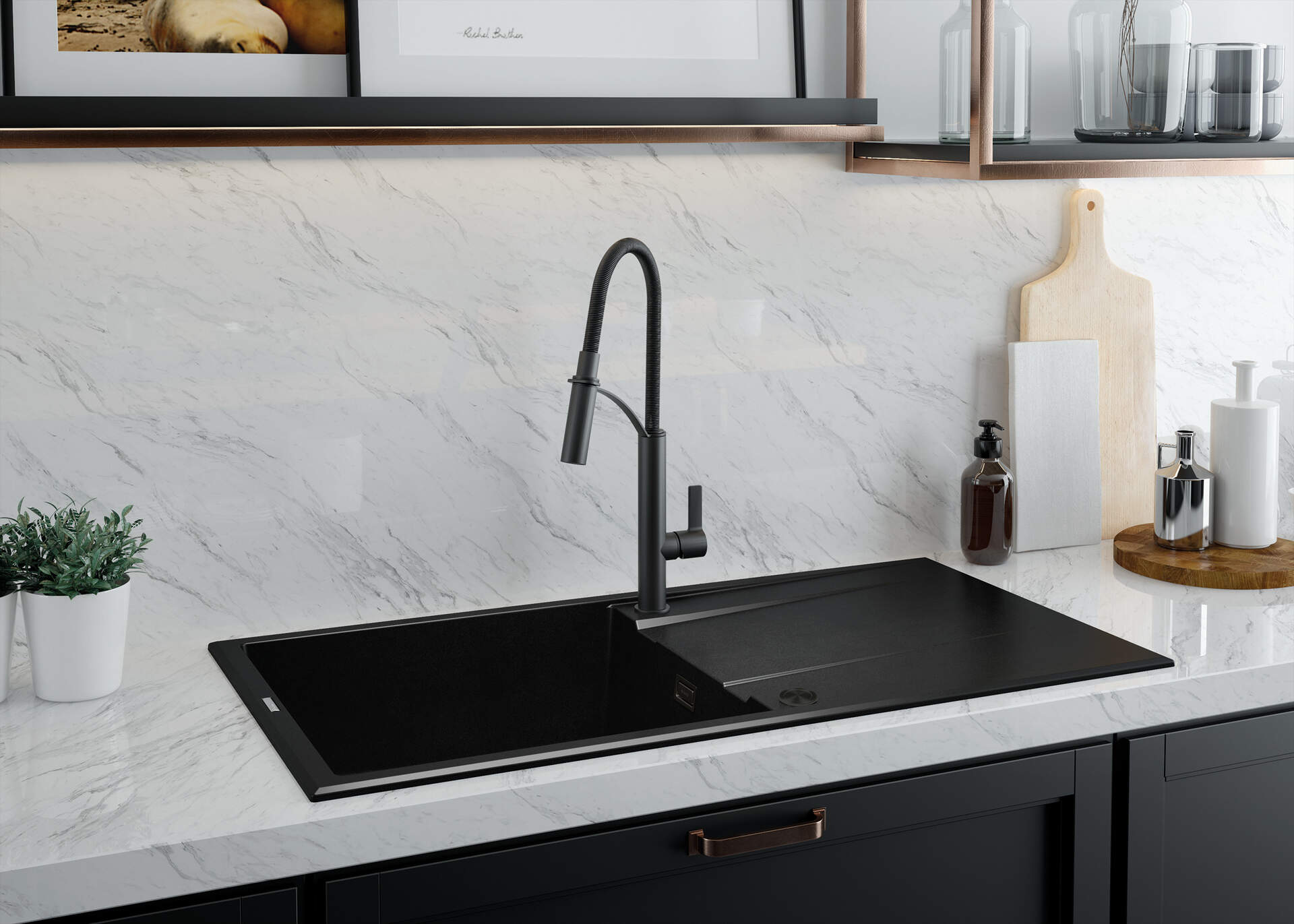 Czarna, matowa powierzchnia armatury Deante NERO jest efektem wykorzystania innowacyjnej technologii. Jej wyjątkowe właściwości sprawiają, że na produkcie nie pozostają odciski palców. Struktura powierzchni jest trwała i łatwa do utrzymania w czystości. pozbyć się osadu, wystarczy przetrzeć baterię miękką ściereczką. Co więcej, zaaranżowanie wnętrza z użyciem armatury o głębokim czarnym kolorze sprawia, że otaczające ją barwy wydają się jaśniejsze, pełniejsze i wyraziste.