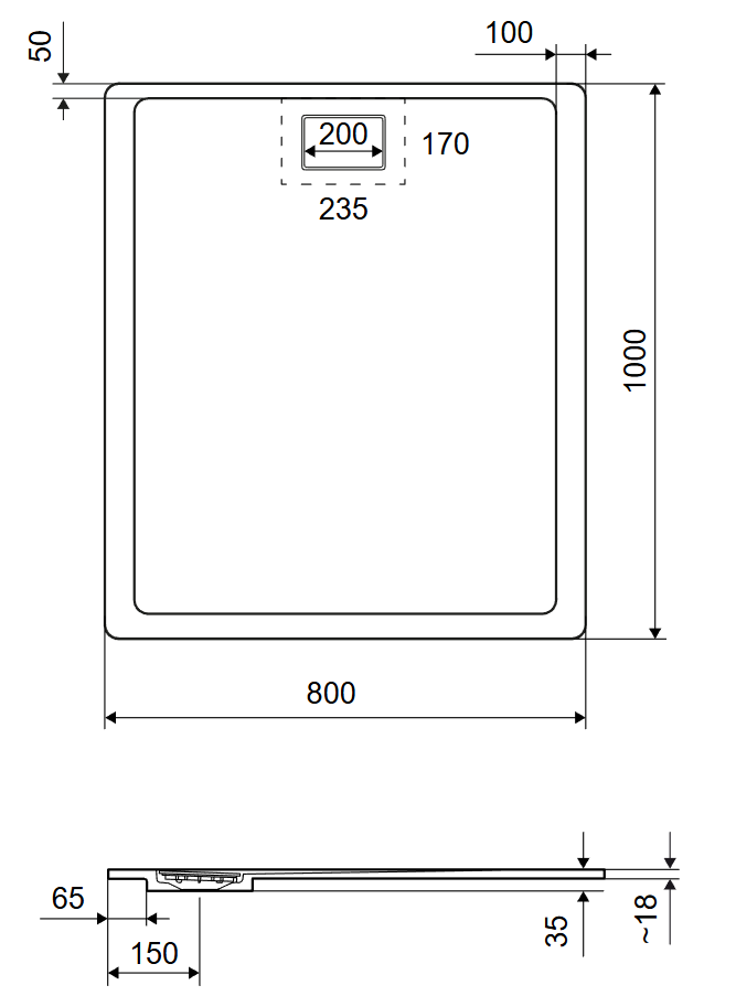 BRODZIK PROSTOKĄTNY 100x80x1,5 CM LAVANO BIAŁY EXCELLENT