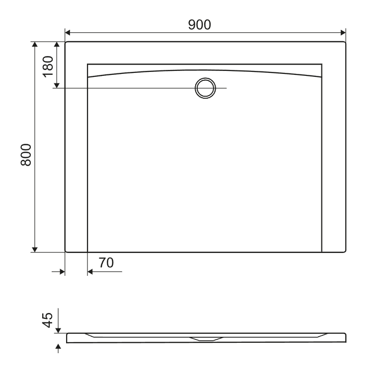 Przeznaczenie • sposób montażu: na posadzce • średnica odpływu: 90 mm • wymiary: 800 x 800 x 40 mm • kolor: biały • materiał: akryl |