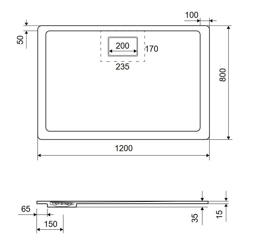 Przeznaczenie • sposób montażu: na posadzce, zlicowany z płytkami • pokrywa syfonu zlicowana z powierzchnią brodzika • średnica odpływu: 90 mm • wymiary: 1200 x 900 x 17 mm • kolor: biały • materiał: Lite minerals |