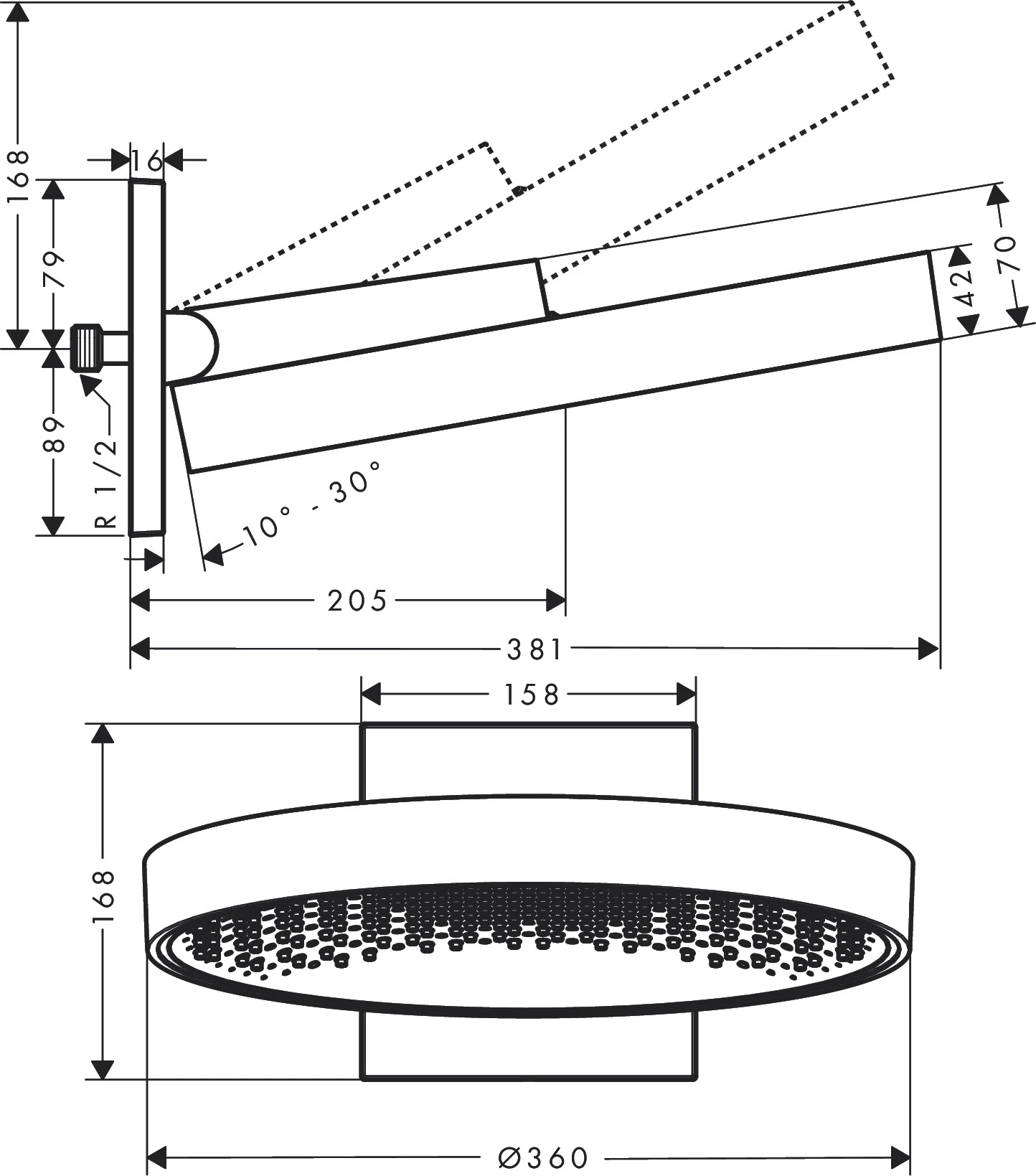 ✅ głowicę prysznicową można odchylać w pionie w zakresie 10-30 °