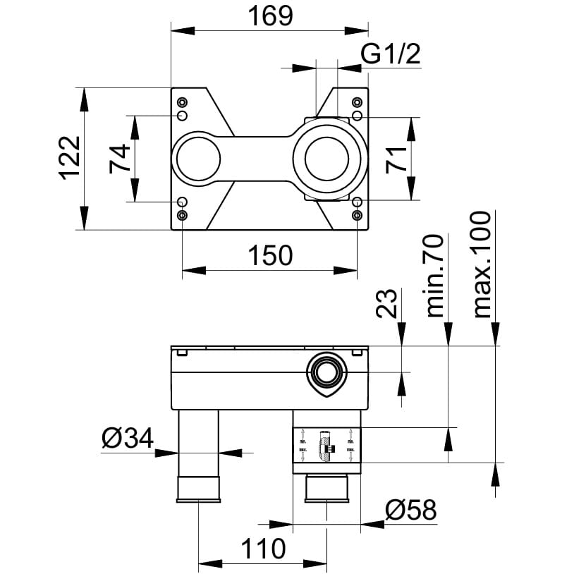 Przeznaczenie • montaż podtynkowy • podłaczenie 1/2" • do baterii jednouchytowej umywalkowej DN 15 • głębokość montażu 70 - 100 mm |