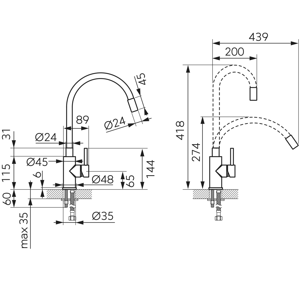 FERRO ZUMBA NERO BATERIA ZLEWOZMYWAKOWA Z CZARNA ELASTYCZNĄ WYLEWKĄ