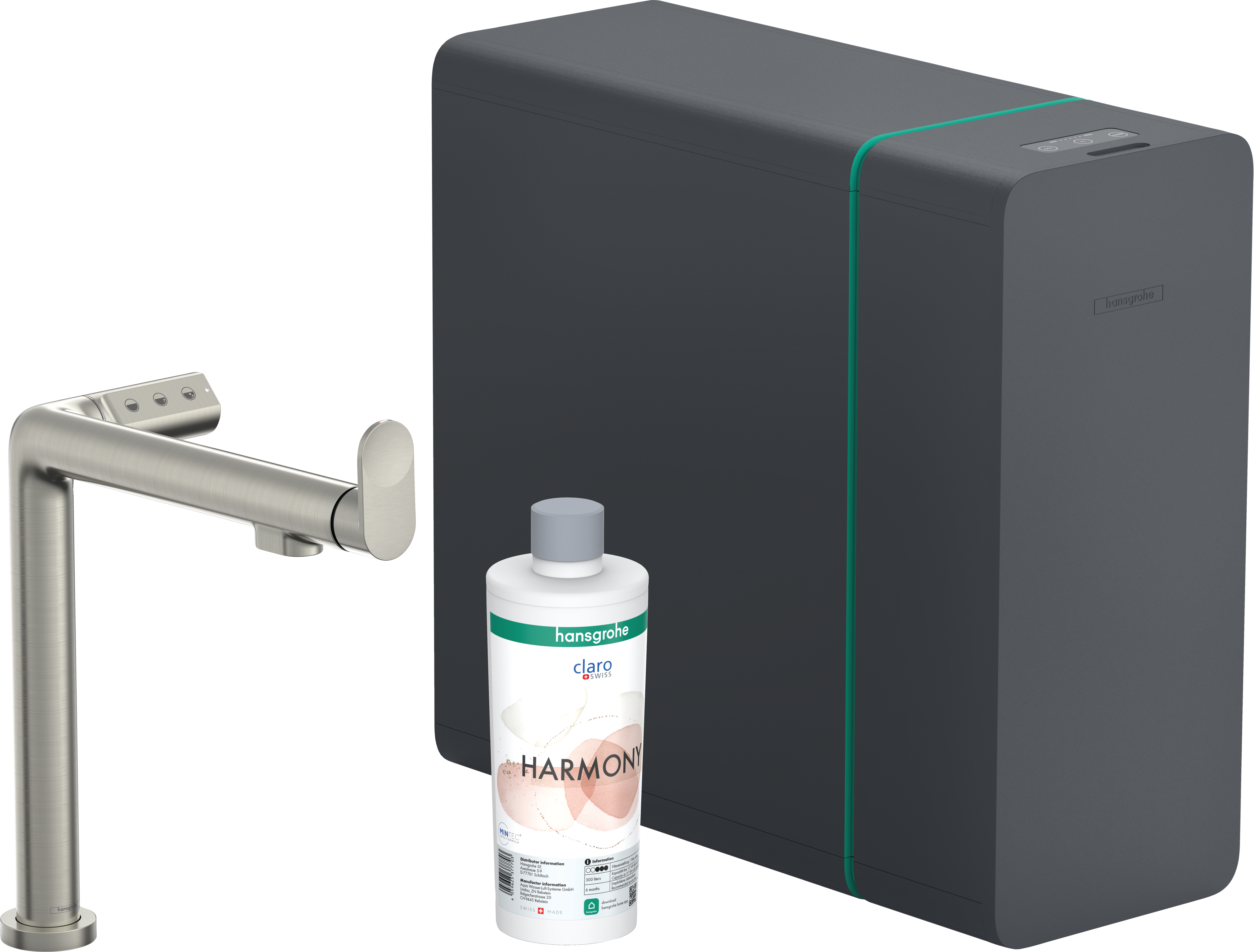 w składzie: jednouchwytowa bateria kuchenna, głowica filtra, wkład mineralizatora Harmony z filtrem, SodaBase