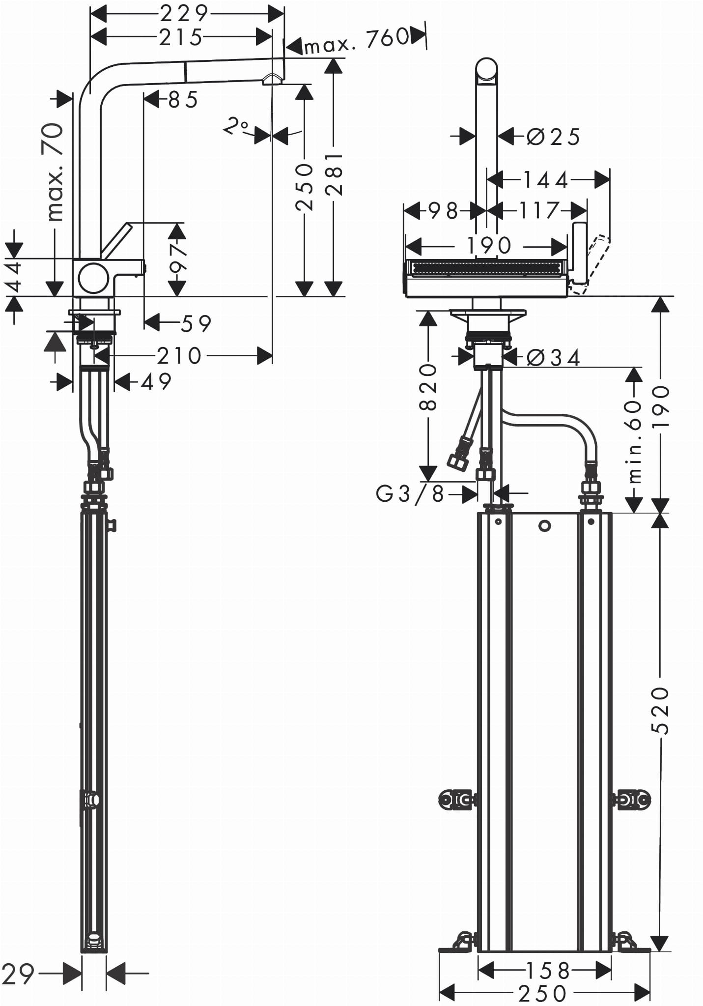 Hansgrohe Aquno Select M81 Jednouchwytowa bateria kuchenna 250, wyciągana wylewka, 2jet, sBox Aquno Select M81 Stal Szlachetna Finish