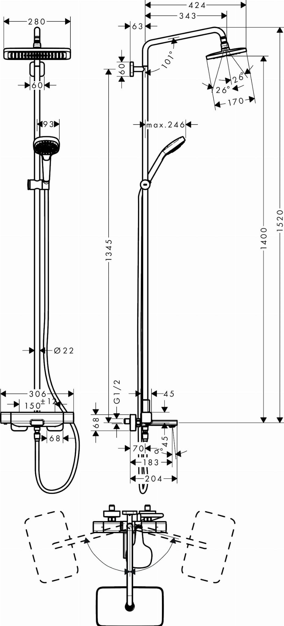 Hansgrohe Croma E Komplet prysznicowy 280 1jet z termostatem wannowym